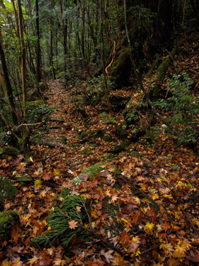 森の奥深く、湿ったコハウチワカエデの葉が古道を埋め尽くします。派手さはないですが、このじんわりと感性に訴えかけてくるような感じが堪りません!
