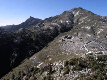 じゃじゃ〜ん。完全に凍っています。ですが、この透き通った蒼い空はどうですかぁ。もう最高のひと言です。山頂の景色よりも私はここからの景色が好きです。久しぶりに午前中の光りを浴びながらここから見る宮之浦岳は、何とも雄大で美しかったです。いやぁ、最高の山日和でした♪