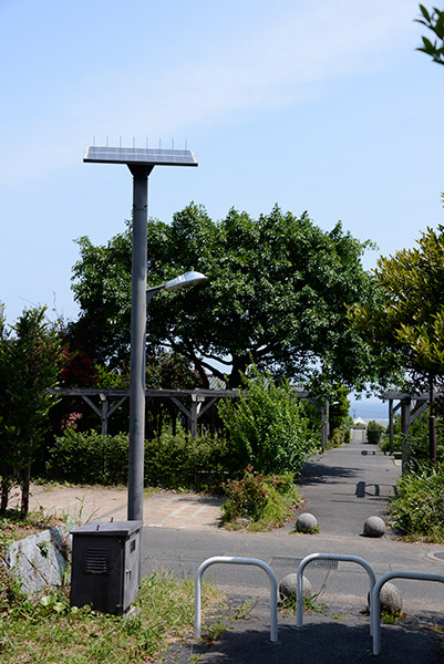 こちらは太陽光発電で灯る街灯の近くに設置されていました。