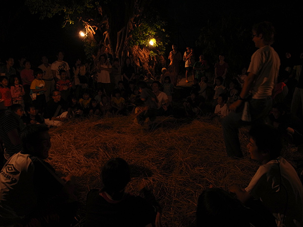 夜になると、大きなアコウの木に大人から子供まで集まり、綱引きをします。