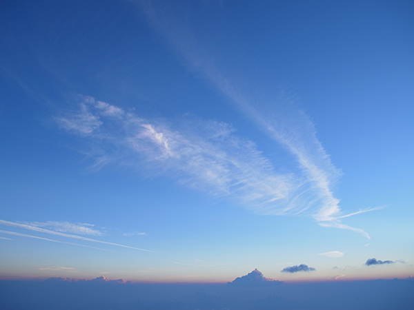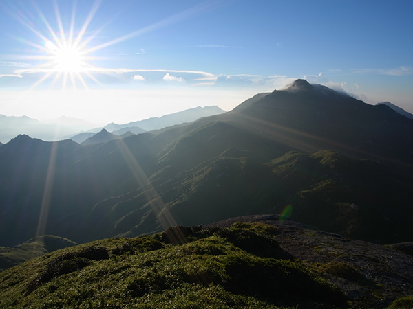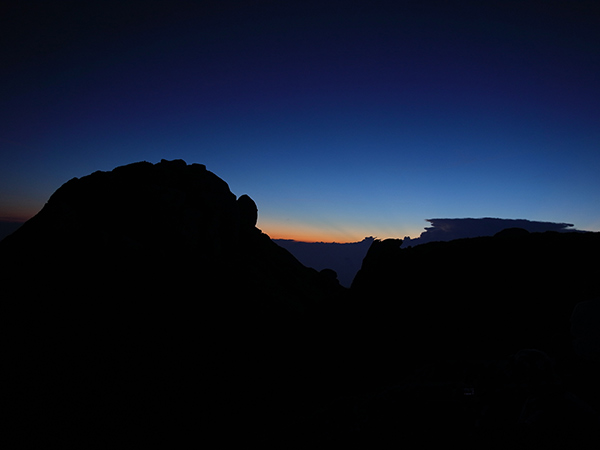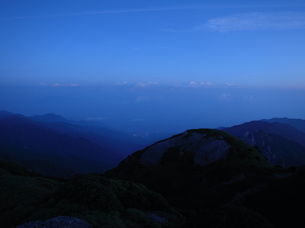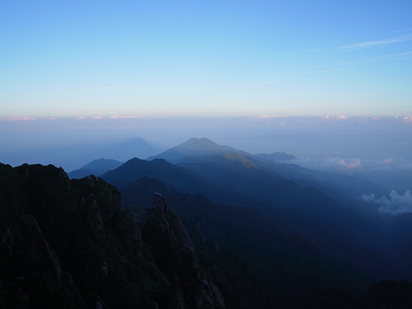宮之浦岳の陰が永田岳を越えて海へと伸びる