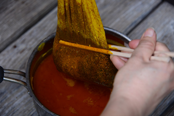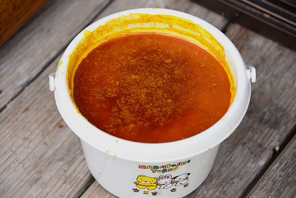 こうして漉した後、このまま鍋に残しておいても良いのですが、私はもう一回今までの作業を繰り返すので、バケツに移しました。