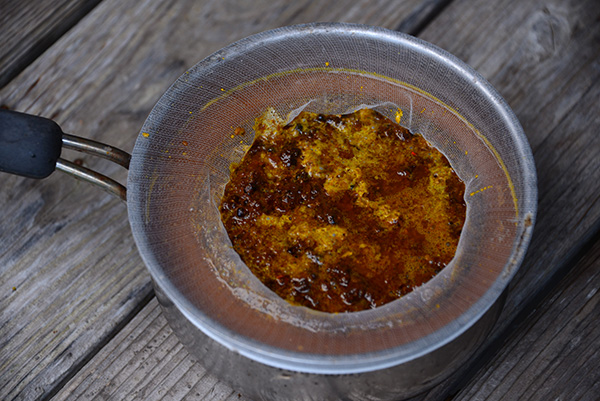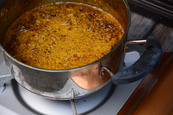 しっかりと溶け出したら、火を止めて、別の鍋に移し替えます。
