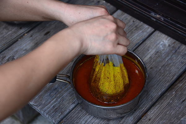 たまに割り箸でツンツンしてしっかりとロウが溶け出すよう手伝ってあげます。