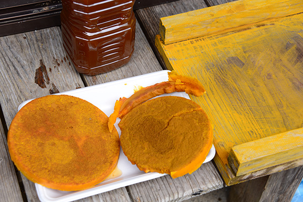 美味しいパンケーキみたいに出来上がったミツロウ。