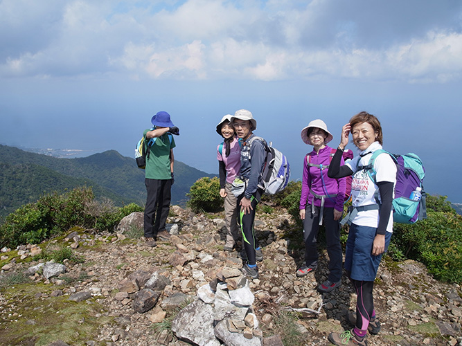 みんなで広がる景色と幸せな時間を味わいました。覆い始めていた雲もドンドン取れて行き、ついには宮之浦岳山頂も顔を出してくれました\(^O^)/海の碧もまた美しいし、やっぱり愛子岳は登り甲斐のある山です♪