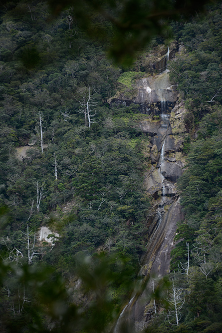 大雨の時に、滝となって山肌を流れるのが見える場所