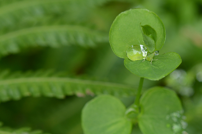 外来種なのですが、いつも綺麗なしずくを作る植物がいて、しずくをマジマジと見ていると…
