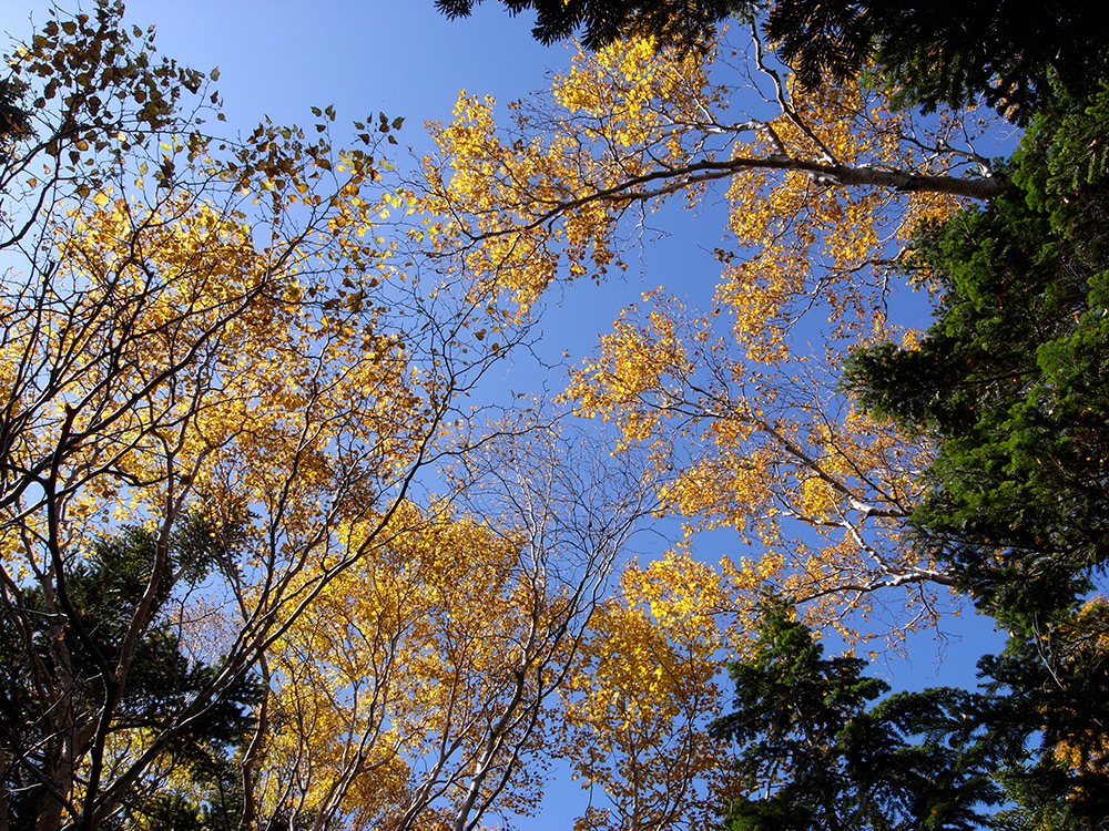 登りで通った道を駒津峰までもどり、そこから双児山を通っていく。初めて蒼い空のキャンバスに紅葉の色が載る♪この清々しさよ。何と言っても四日目にして初めての快晴だ。そりゃぁ~、テンションも上がるってもんでしょ(笑)