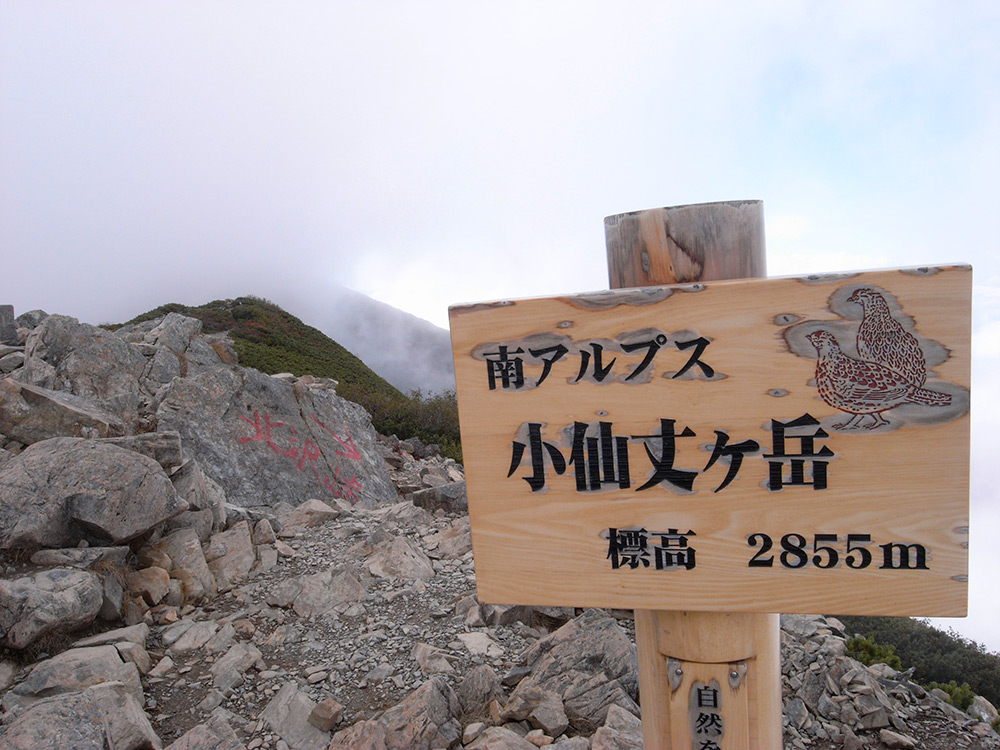 ついに小仙丈ヶ岳に到着~。あまりにもステキな看板に感動♪屋久島の看板もちょっと見習いませんかぁ(笑)綺麗とかも有るけど、遊び心があって風情がある。感じ方は色々なのかもしれないけど、私はすっごく気に入りました。