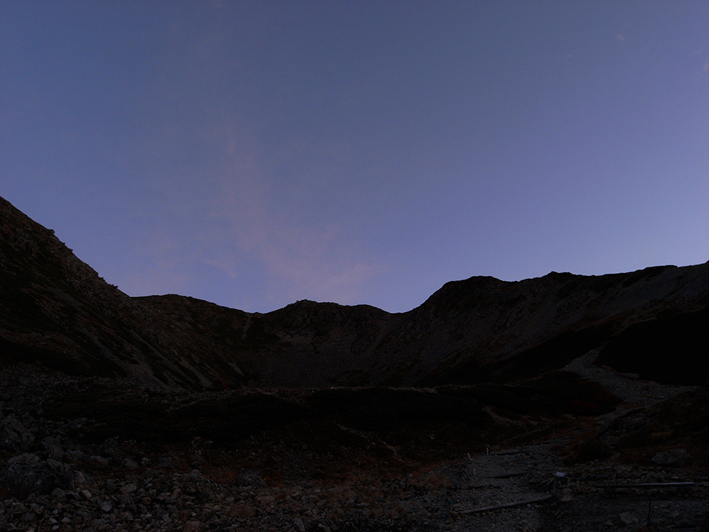 4日目。前日まで降っていた雨が遂に止んだ・・・。小屋から出ると外にはまだ星が残り、街明かりが見えた。遂に天気が回復した。そろそろ太陽が見たい頃だ(笑)今日は甲斐駒ヶ岳と仙丈ヶ岳の両方のピークを踏む日だ!こりゃぁ楽しみってもんだ♪